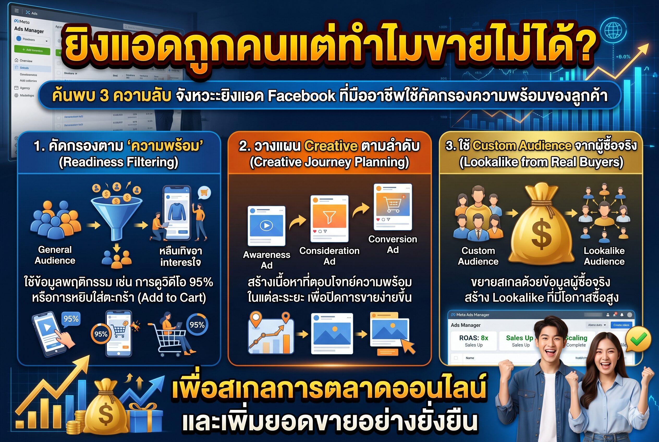 “ทำไมเราตั้งค่าความสนใจ (Interest) แม่นยำมาก คอนเทนต์ก็ทำมาอย่างดี รูปภาพสวยสะดุดตา แถมคนก็กดไลก์กดแชร์กันเยอะแยะ… แต่พอถึงเวลาให้กดสั่งซื้อหรือทักอินบ็อกซ์ ลูกค้ากลับเงียบกริบเหมือนป่าช้า? สรุปว่าเรายิงแอดไปหาคนผิดกลุ่ม หรือว่าสินค้าเรามันไม่น่าสนใจกันแน่?”